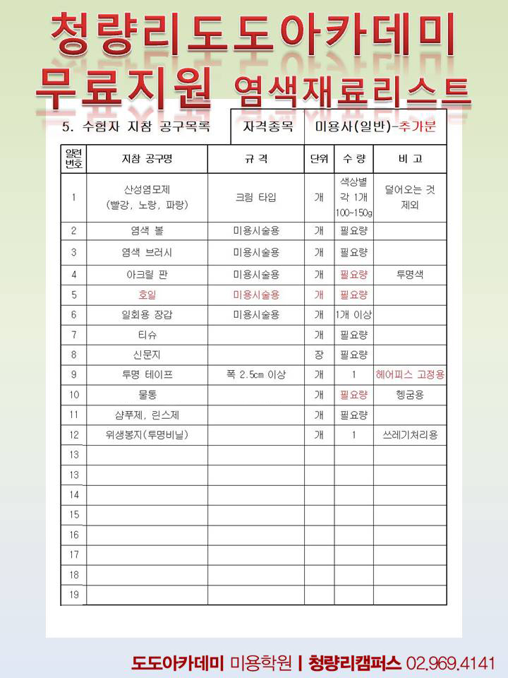 그래서 청량리미용학원 도도아카데미에서는 10만원상당의 염색재료를