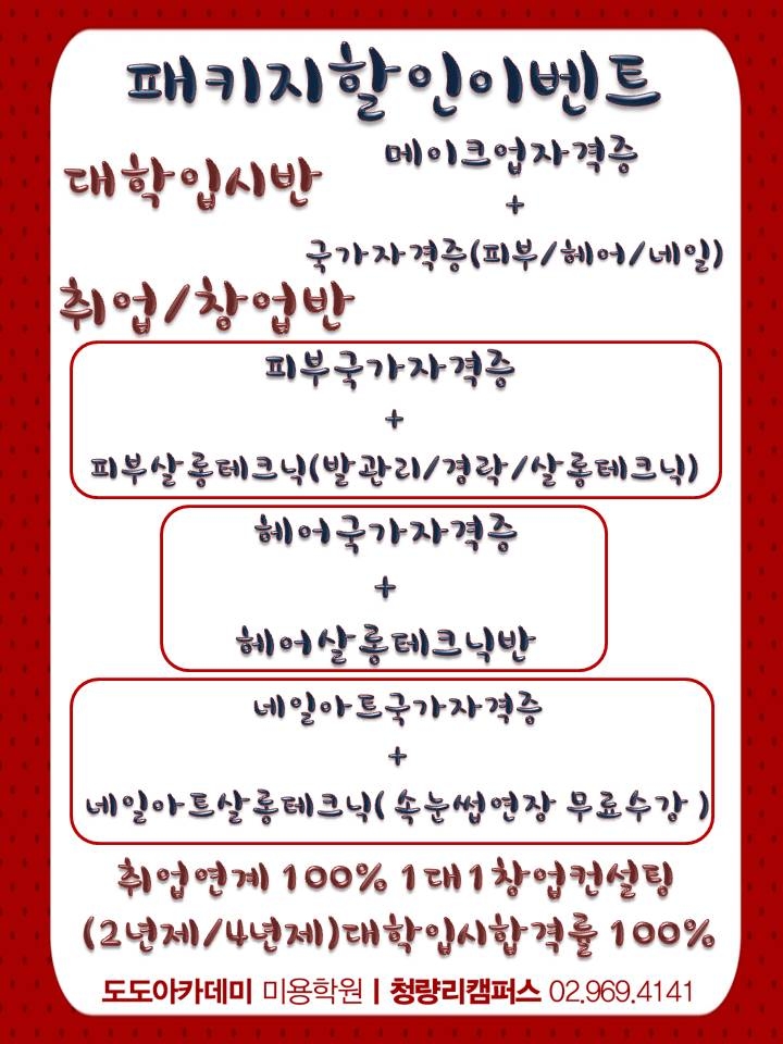 [이벤트] 4월 특별 이벤트! ★메이크업 자격증+국가자격증반 패키지 할인 이벤트★ 페이지 정보 작성자 도도아카데미 작성일16-12-03 14:06 조회7,017회 댓글0건 이전글 다음글 목록 본문 4월 특별 이벤트! ★메이크업 자격증+국가자격증반 패키지 할인 이벤트★ 이전글 다음글 목록