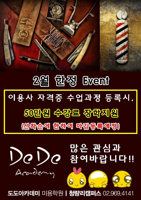[개강안내] 2월한정이벤트 / 이용사자격증반 개강 / 50만원 수강료 장학지원혜택(선착순) 페이지 정보 작성자 도도아카데미 작성일16-12-03 14:04 조회4,916회 댓글0건 이전글 다음글 목록 본문 2월 한정이벤트 / 이용사자격증반 개강 /50만원 수강료 장학지원혜택(선착순) 이전글 다음글 목록